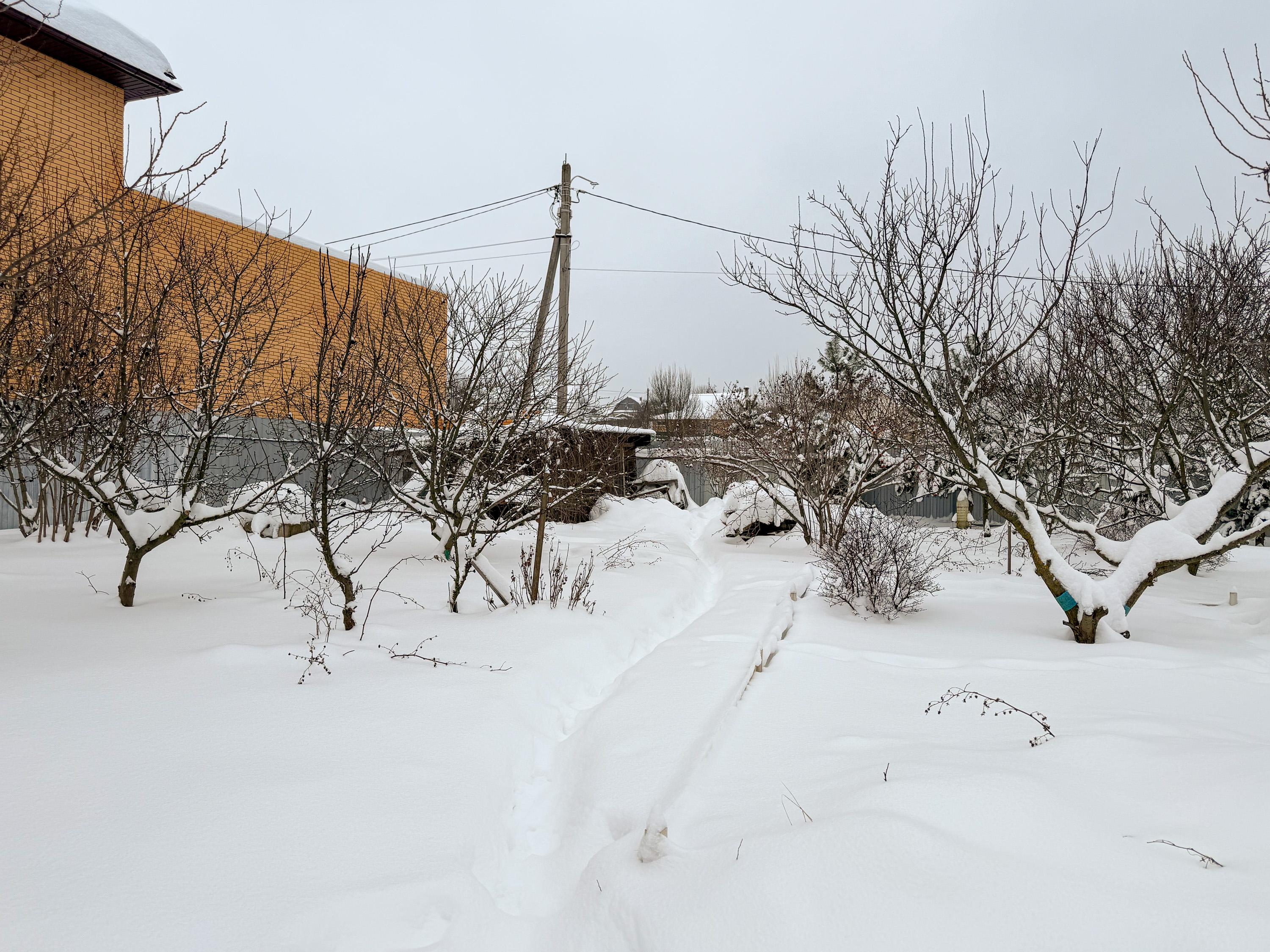 Много плодовых деревьев и кустарников: яблони, вишни, сливы, облепиха, ежевика, малина, жимолость, клубника, земляника, калина.
