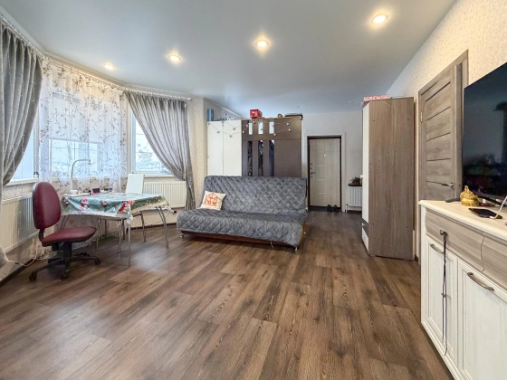 прихожая, просторная кухня-гостиная, комната, совмещённый санузел.