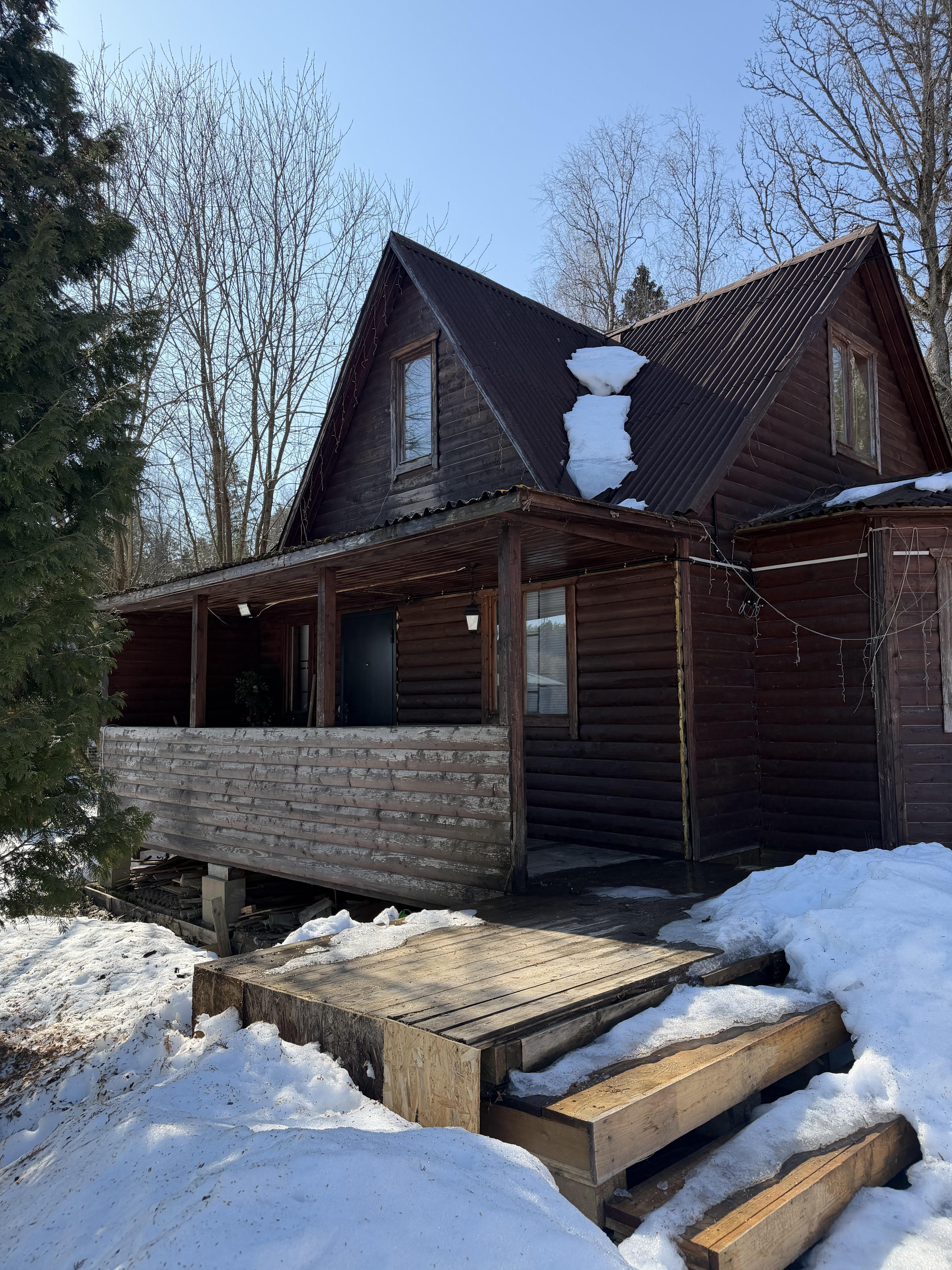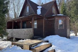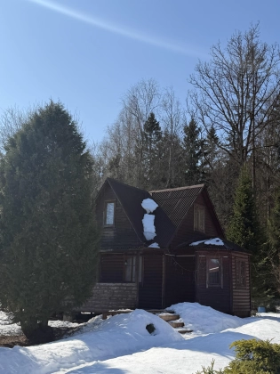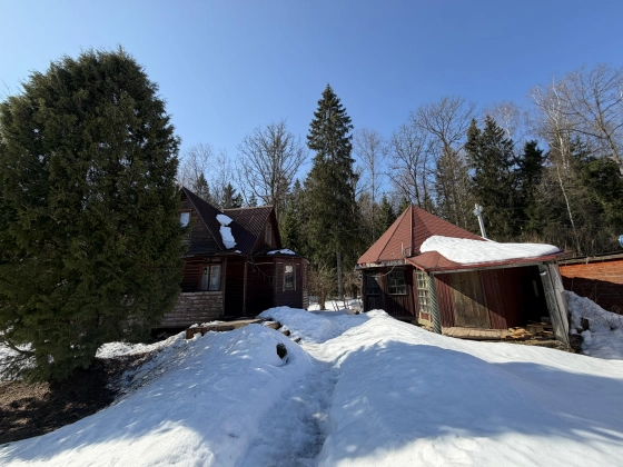 Основной дом подходит для круглогодичного проживания. Есть электрическое отопление, вода в доме (скважина), канализация (септик). Имеется открытая веранда. В доме на первом этаже прихожая, большая гостиная студия, совмещает кухню и гостиную, ванная комната (душевая кабина, туалет). На втором этаже просторная комната, балкон с потрясающим видом на лес.