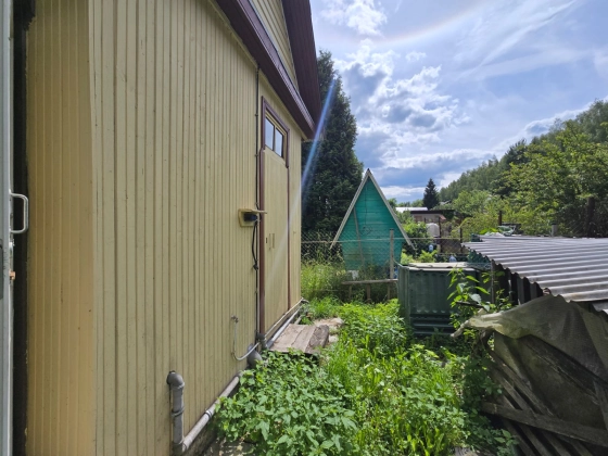 Садовый дом, жилое строение, 2009 года постройки. Общая площадь садового дома составляет 108 квадратных метров. Он построен в двухэтажном формате из бруса, имеется минус первый этаж на весь дом высотой 2, 40 м., и хозяйственная пристройка 25 кв. м.,. Окна в доме деревянные — двойные рамы, стены — обшиты вагонкой, а крыша покрыта оцинкованным железным профилем.