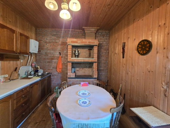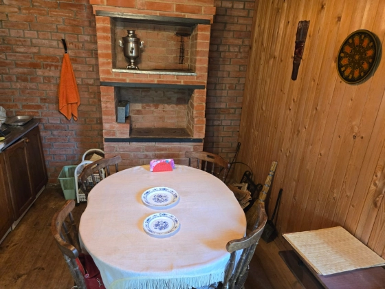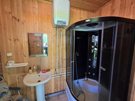 Кухня с печкой, душевая комната, с/у, сбоку хоз. блок.