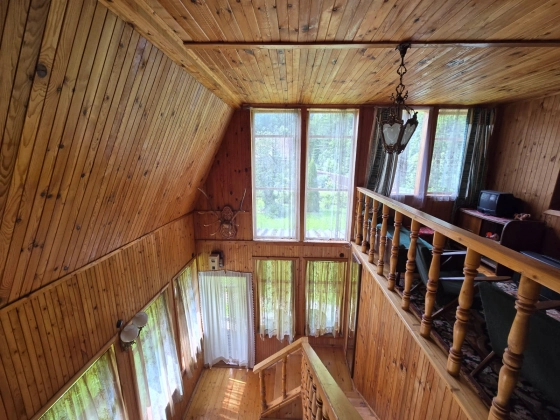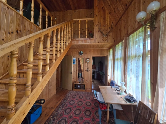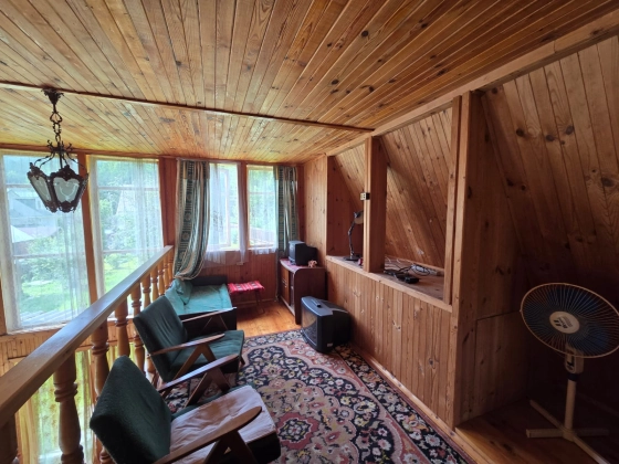 Дача расположена в тихом и живописном месте, в 800 метрах от деревни Клово, До участка проложен асфальт.