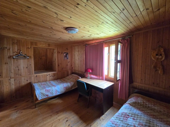 На первом этаже — гостиная и две спальни, печь.