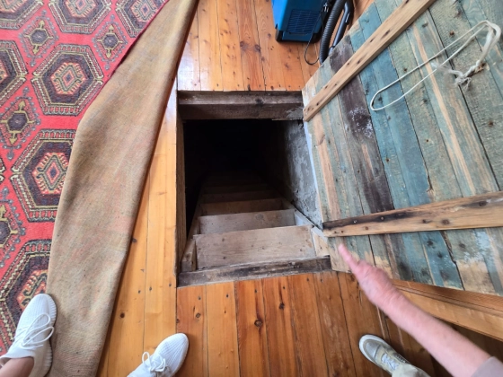 На минус первом этаже --- подвал на весь дом 6Х8, стены (цемент)