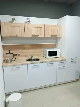 Есть оборудования кухня, посудомоечная машина, мокрая точка.