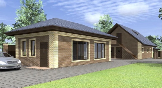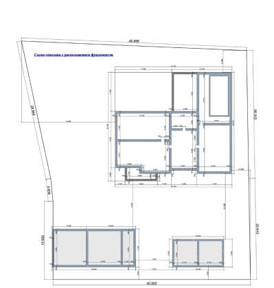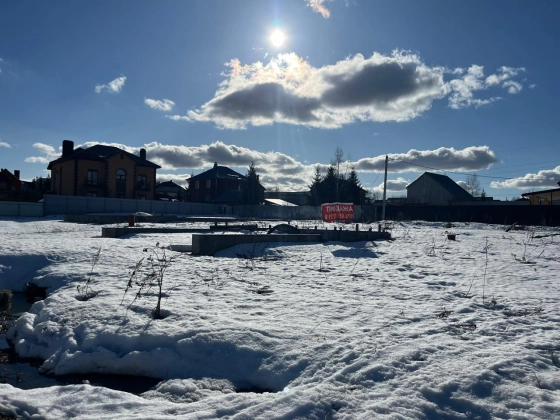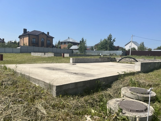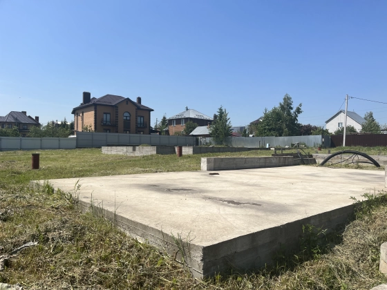 На участке залито два фундамента под дом и гараж с хоз. блоком и навесом для машины.